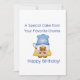 Tarjeta con tu Gnome Favorito sosteniendo un pastel especial con un saludo de Feliz Cumpleaños.