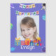 Con un vibrante fondo de color púrpura claro adornado con planetas juguetones y una ilustración caprichosa de un astronauta, esta tarjeta personalizada te permite agregar el nombre del niño que cumple años y una foto querida, creando un recuerdo único y memorable.
