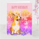 Pintura de flores de corgi de fondo. Para todos los amantes del perro, ¡Feliz cumpleaños!