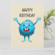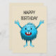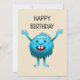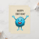 El pequeño monstruo lindo azul en una tarjeta de cumpleaños.