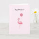 Tarjeta de cumpleaños de flamingo rosado.