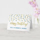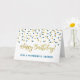 Tarjeta de cumpleaños para un amigo con un patrón de confeti moderno dorado y azul.
