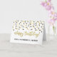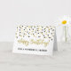 Tarjeta de cumpleaños para un amigo con un patrón de confeti moderno dorado y negro.