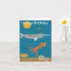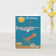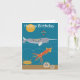 Tarjeta de cumpleaños de animales marinos con narwhal, calamar, cangrejo y dólares de arena. Coincide con papel de envoltura de animales de mar