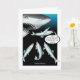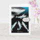 La imagen de la tarjeta es de una bebida arenosa y ajena a un tiburón que se avecina. Texto interno: "¡No te metas demasiado en tu cumpleaños!" La parte trasera de la tarjeta enumera hechos divertidos sobre arenques.