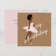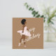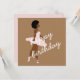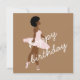 Tarjeta de saludo de cumpleaños de ilustración de retrato de arte moderno de bailarina negra con cabello afro minimalista para cualquier edad, sobre un fondo marrón claro y rosa, puedes cambiar la fuente (color, estilo) y el color de fondo como desees, texto marrón y blanco de guión personalizado (parte posterior)