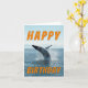 Celebra con esta carta de cumpleaños temática oceánica que presenta una majestuosa violación de ballenas. En el interior se puede leer "¡Ten una ballena de un tiempo!" Perfecto para los amantes de la vida marina y de los fiestas de temática marina.