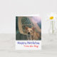 Esta tarjeta de cumpleaños de perro fue diseñada a partir de una fotografía de mi Border Collie Rojo Australiano rescatado llamado Jerry. Jerry fue abandonado en Loma Linda Missouri donde pastoreó ciervos durante un año antes de ser atacado y herido por un coyote. Dejado por muerto al lado de la carretera, mi esposo y yo lo encontramos y lo llevamos corriendo al hospital de animales. En esta fotografía tiene 12 años y mi perro está celebrando su cumpleaños descansando en la silla de rattán.