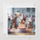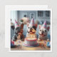 Un ilustracion divertido y dulce de bulldoges franceses con una torta de cumpleaños y gorras fiestas. Esta es la tarjeta perfecta para los amantes del bulldog francés y los pequeños amantes del perro. La tarjeta puede ser completamente editada y personalizada a sus necesidades.