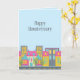 Tarjetas caprichosas de "Aniversario de casa" para marketing inmobiliario. El diseño presenta un barrio urbano lindo sobre un fondo azul claro. Perfecto para agentes inmobiliarios residenciales, prestamistas hipotecarios, agencias de títulos, servicios de inspección de viviendas, etc.