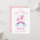 Un lindo unicornio rosa rodeado de corazones y parado en un arcoiris decora esta bonita tarjeta de cumpleaños chica unicornio. Personalízalo para tu cumpleaños chica favorito. Diseñado para ti por Blackberry Boulevard.