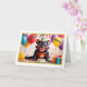 El frente de esta tarjeta de cumpleaños presenta un diseño animado y enérgico con un personaje personalizado —un animal lindo y travieso que se parece a un demonio de Tasmania. El personaje lleva puesto un gorra fiesta a rayas y tiene una sonrisa amplia y alegre, que ofrece una atmósfera divertida y divertida. Delante del personaje hay un pequeño pastel de cumpleaños con velas, listo para ser celebrado. Alrededor de la escena hay globos de colores vivos en tonos amarillos, violetas, azules y rojos, lo que crea una atmósfera festiva. Las palabras "Feliz cumpleaños" están escritas en una letra divertida y curvada en las esquinas superior izquierda y derecha, enmarcando perfectamente al personaje. El texto es negro con un contorno amarillo, lo que lo hace aparecer en el fondo vibrante. El borde de la tarjeta es un cuadro amarillo coloreado y gradiente con una textura sutil, añadiendo una capa extra de emoción al diseño. En general, la tarjeta transmite un sentido de diversión, alegría y celebración, ¡lo que la convierte en ideal para el cumpleaños de un niño pequeño que ama los personajes animados y la diversión de los fiestas!