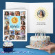 Esta carta es más grande y mejor que una tarjeta normal y está destinada a hacer cosquillas en el corazón feliz de la persona de cumpleaños. Esta tarjeta se puede personalizar y puede cambiarla a cualquier relación o nombre que funcione para usted. Un sol decorativo amarillo y naranja sonriente sobre un fondo azul de rayos y nubes está en medio de un collage de fotos de 18 fotos para que las compartas con tu persona de cumpleaños. El interior de esta gran carta tiene otro lugar para la foto de la persona de cumpleaños con rayos amarillos y el texto dice "¡El sol empezó a brillar un poco más el día en que naciste!"