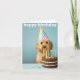 una linda tarjeta de cumpleaños de cucaracha para los amantes de la cucaracha en su vida o para cualquiera que ame perros lindos. perro lindo con gorra rayado de arco iris con deliciosa torta de cumpleaños de chocolate con velas