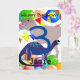 Tarjeta de cumpleaños de dinosaurio personalizada para hijo, sobrino o nieto de 3 años. Agrega tus propias imágenes y palabras para crear una tarjeta de felicitación única.