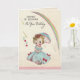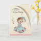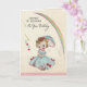 En la parte delantera hay una niñita con vestido azul que tiene arcos rosados. Lleva un paraguas azul para cubrir sus rubios rubios de la lluvia . Encima de ella hay un hermoso arco iris. Dentro ha dejado de llover, el sol está afuera y ella se está inclinando sobre su paraguas posando. No dejes que las duchas de tu cumpleaños te hundan. ¡La preciosa mirada en la cara de estas niñas es lo suficientemente alegre! Echa un vistazo a su franqueo correspondiente. Todos los diseños de tarjetas tienen al menos 55 años de antigüedad y se recrean digitalmente para su uso actual.