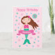 Esta tierna tarjeta de cumpleaños de sirena puede ser personalizada con un nombre y una edad. En el interior hay una sirena más linda bajo el mar y un mensaje de cumpleaños para que puedas personalizar con tu propio texto.