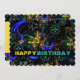 Tarjeta de cumpleaños de explosión exótica de fuegos artificiales en llamas