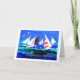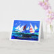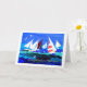 Tarjeta de cumpleaños con "cumpleaños feliz" en español, con una capa marina con yates, de un collage de papel pintado a mano de Judy Adamson. El interior se deja en blanco para tu propio mensaje y si quieres que cambien el texto de la portada, por favor contacta conmigo a través de mi tienda.