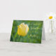 Bonito y carta de saludo reflexiva para el cumpleaños de la madrina con tulipán amarillo y texto de estilo con letras a mano.