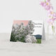 Hermosas flores blancas resaltan en esta tarjeta, un suave cielo rosa y hierba y montañas en el fondo. Desea a alguien un cumpleaños maravilloso.