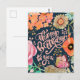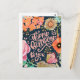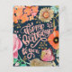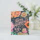 Hermosas flores pintadas a mano en rosa, naranja y rojo sobre un fondo gris oscuro con letras a mano en rosa. Obra de arte original de Caroline Bonne Müller