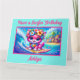 Una escena tropical divertida y de ensueño con un gatito rosa surfeador adorable. Perfecto para una tarjeta de cumpleaños o una tarjeta "Pensando en ti". Personaliza con tu propio texto personalizado.