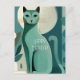 Celebra el cumpleaños de un amante de los gatos con estilo con esta tarjeta postal de gato retro de mediados de siglo. El diseño presenta una elegante impresión verde de un gato en estilo abstracto de mediados de siglo y un texto personalizable y audaz que dice "¡Feliz cumpleaños!". Esta tarjeta postal es perfecta para enviar un saludo de cumpleaños divertido y único a tu amigo o familiar amante de los felinos favorito.