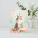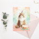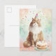 Esta tarjeta postal caprichosa presenta un adorable gato esponjoso que lleva un sombrero de fiesta colorido, sentado orgullosamente junto a un pastel de cumpleaños con velas encendidas. Rodeado de confeti pastel, este diseño es perfecto para los amantes de los gatos, amigos y familiares que aprecian una forma divertida y encantadora de celebrar.