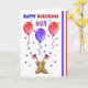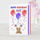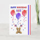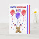 Celebra el cumpleaños de tu hijo militar con esta divertida y colorida carta que incluye una frontera roja, una franja azul, letras rojas y azules, estrellas, banderas estadounidenses y botas de combate.