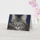 El mensaje dentro de esta tarjeta dice: "¡Guau! Nunca te veías mejor. Feliz Cumpleaños" Esta tarjeta de felicitación de cumpleaños muestra a nuestro hermoso gatito siberiano a rayas grises, Kimber. Con los largos remolinos de piel de Kimber en sus oídos, los ojos verdes y la maravillosa expresión facial, esta carta seguramente hará sonreír a cualquiera.