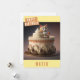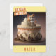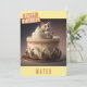 Una tarjeta de cumpleaños con un gatito sentado en una tarta de cumpleaños al frente con "Feliz cumpleaños", letra negrita de todos los mayúsculas. Personalice la parte delantera agregando su(s) nombre(s). El interior de la tarjeta incluye espacio para el mensaje escrito a mano o con tipeo.