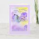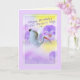 Las alas del Ibis blanco con el fondo de las coloridas pansies, hacen un suave y encantador saludo de cumpleaños para la esposa de un pastor, la esposa del predicador, la esposa del ministro.