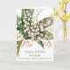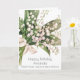 Celebra un cumpleaños en mayo con una elegancia atemporal y flores significativas. Esta tarjeta de cumpleaños con la flor de nacimiento de mayo presenta un delicado ramo de lirios del valle y espino albar en acuarela, las flores de nacimiento tradicionales de mayo que simbolizan dulzura, humildad, felicidad, esperanza y amor.