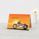 Una moto similar a un Harley que hace una pausa el mar con una puesta del sol anaranjada gloriosa. Una gran tarjeta para cualquiera que tiene gusto de biking y las motocicletas. Vea la gama entera de tarjetas para las edades y las relaciones en mi tienda. Todos los derechos reservados Norma Cornes de las ilustraciones
