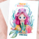 Celebra un cumpleaños mágico con esta magnífica tarjeta personalizada de cumpleaños de sirena, diseñada especialmente para chicas que adoran aventuras oceánicas y diversión bajo el mar! Con un hermoso ilustracion de sirena, elementos caprichosos del mar y un mensaje de cumpleaños de rima dulce, esta carta es el conservador perfecto. Personalizar fácil con el nombre y la edad del niño para hacerlo realmente especial. Ideal para fiestas de cumpleaños con temática de sirena, esta tarjeta es una elección maravillosa para hijas, sobrinas, nietas o cualquier pequeño fan de la sirena. Perfecto para niños pequeños, niños y adolescentes - esta encantadora tarjeta de cumpleaños de sirena trae brillo y alegría a su día especial!