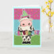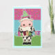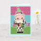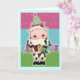 ¡Una vaca linda en un gorra fiesta y un texto que dice "Celebremos" en la tarjeta de felicitación de cumpleaños de la vaca sagrada!