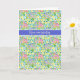 Una tarjeta de cumpleaños bonita con el saludo en holandés y un modelo de color rosa oscuro, primaveras profundamente azules y amarillas, de un diseño pintado a mano de Judy Adamson.