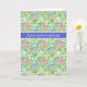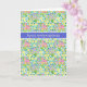 Una tarjeta de cumpleaños bonita con "feliz cumpleaños" en finlandés y un modelo de color rosa oscuro, primaveras profundamente azules y amarillas, de un diseño pintado a mano de Judy Adamson.