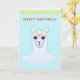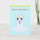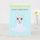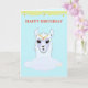 Dibujo de Llama sobre la tarjeta de cumpleaños turquesa ligera. Todos los textos se pueden personalizar.