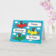 Una hermosa foto de tres osos en aviones rojos, amarillos y verdes con pancartas que vuelan entre las nubes en el cielo con una tarjeta de cumpleaños de personalizable. El texto de las pancartas dice: "¡Feliz cumpleaños a ti!" pero se puede cambiar. También puedes cambiar el texto interno que actualmente dice: "¡Espero que tu cumpleaños esté a millas por encima del resto!"