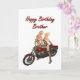 Apenas añada el nombre para personalizar esta tarjeta del polluelo del motorista. Dos chicas con una moto. Ambos chicas son de risa y que llevan de la ropa interior apretada de la piel.