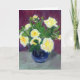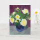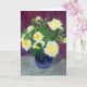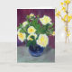 Tarjeta de cumpleaños con un cuadro de aceite pastel de una jarra de Rosas alquimistas amarillos cremosos.