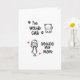 Celebra el vínculo especial entre un gato y su madre con esta encantadora tarjeta de cumpleaños. Con un diseño minimalista, la tarjeta muestra ilustraciones de garabatos de un gato, huellas de pata, una figura de mamá y corazones rojos. El tipo de letra de escritura informal en el frente dice: "Soy tu gato. Eres mi madre", creando un tono juguetón e íntimo. Dentro, el mensaje continúa con "Eso nos hace tener suerte a los dos. Feliz cumpleaños", acompañado de un corazón rojo arriba y una huella de pata negra debajo del saludo. El fondo blanco realza la sencillez y la elegancia del diseño. En la parte trasera, dos pequeñas huellas de pata negra y el texto del personalizable "Hecho especialmente para ti" le dan un toque personal. Haga clic en "Personalizar esta plantilla" para cambiar fácilmente "usted" a un nombre personalizado o quitar el texto completamente. Esta tarjeta es perfecta para mamás gatas que aprecian diseños subestimados pero sentidos. Es un regalo reflexivo y personalizable que celebra la relación única entre un gato y su padre mascota.