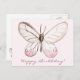 NewParkLane - Tarjeta postal simple pero elegante, con una mariposa de acuarela rosa pálido y beige, sobre un fondo rosa pálido, y con el deseo "Feliz Cumpleaños" en tipografía de letra elegante.