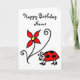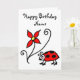 Dibujo animado lindo de una mariquita o coccinela usando tacones altos y con rubor en forma de corazón bajo una flor roja. La tarjeta tiene un hermoso fondo blanco minimalista. Personalice fácilmente esta tarjeta editando el texto de la plantilla en la parte frontal y posterior. ¡Gracias por ver mis diseños!