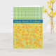 Una tarjeta de cumpleaños bonita para alguien con un cumpleaños en marzo, con un modelo de los narcisos de oro (la flor del nacimiento-mes de marzo), de un diseño pintado a mano del watercolour de Judy Adamson, combinó con un modelo verde de coordinación de la guinga del control. Parte de la colección elegante y Painterly de los "Daffy-abajo-Fenómenos".