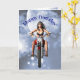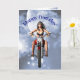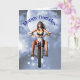 Un hermoso chica montando en bicicleta a través de las estrellas en el cielo. Una tarjeta de cumpleaños muy diferente para el hombre al que le gusta montar.