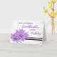 Bonito y cuidadosa tarjeta de saludo para el cumpleaños de la nieta con flores modernas en negro y púrpura y texto de estilo con letras a mano.