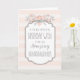 Tarjeta de cumpleaños para nieta con estampado de rayas rosadas y melocotón, flores de primavera, texto rústico de estilo manuscrito y verso reflexivo.